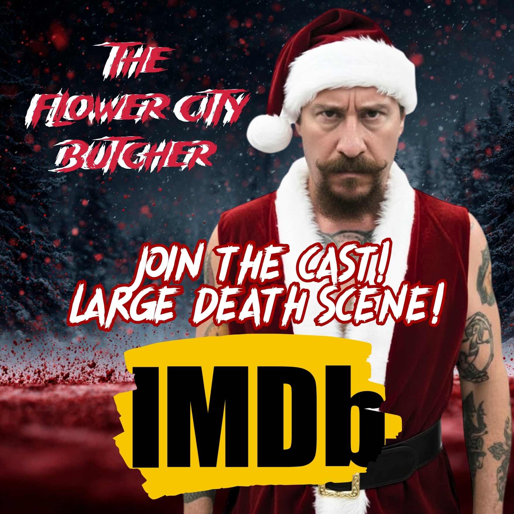 THIS PERK INCLUDES A CUSTOM ACTING ROLE WITH SPEAKING LINES AND A LARGE DEATH SCENE! THIS PERK IS FOR THE FLOWER CITY BUTCHER! THIS PERK ALSO INCLUDES AN OFFICIAL PRODUCER CREDIT!
